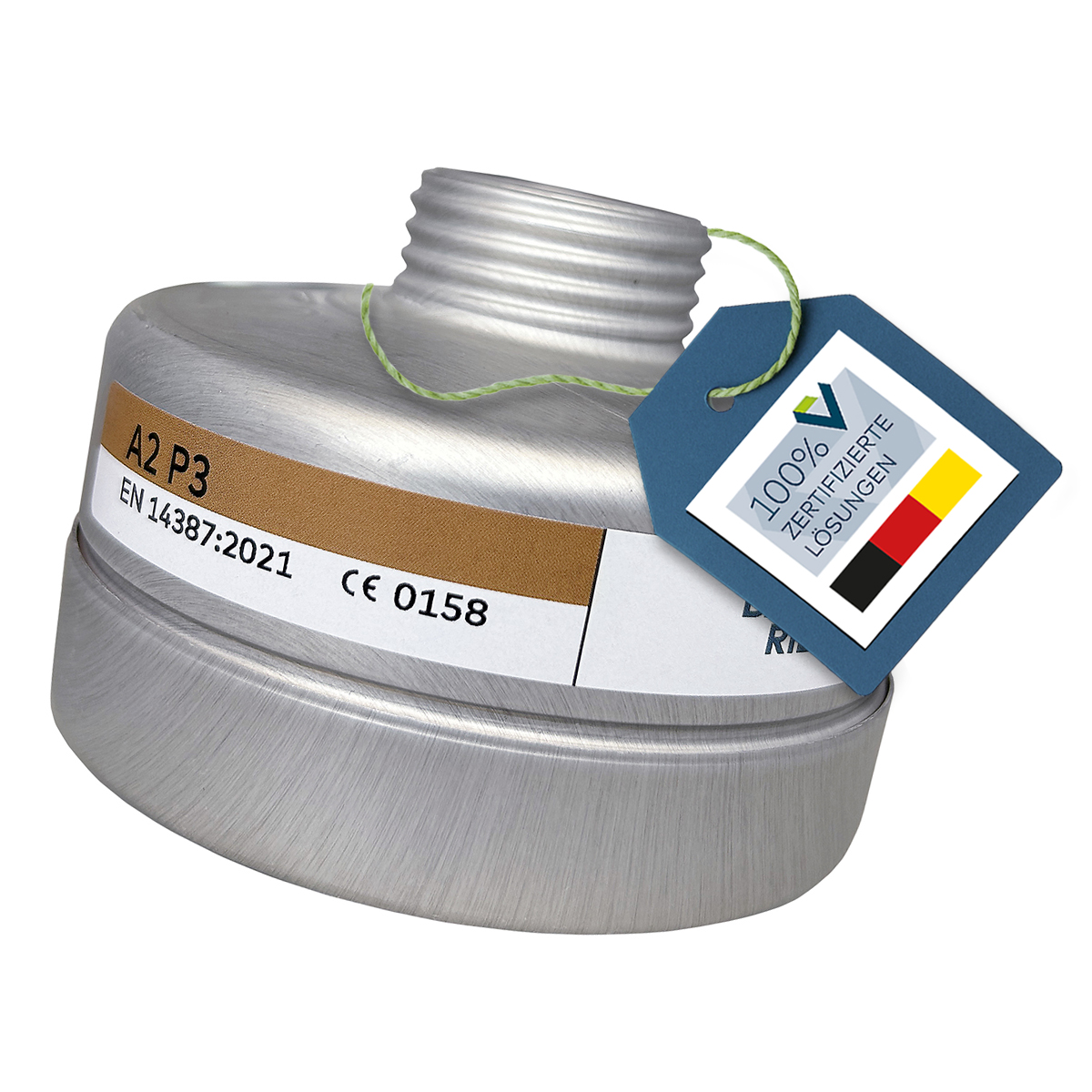 The BR A2P3 combined filter is a screw filter according to EN 14387 A2P3 RD, with standard thread connection according to EN 148-1, for protection against organic gases and vapours with boiling point > 65 °C, in case of simultaneous occurrence of particles of toxic and highly toxic substances.